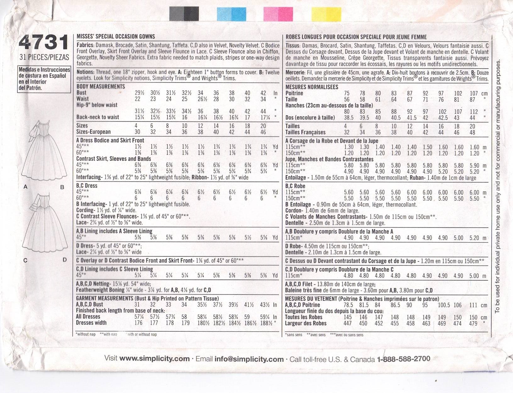 Simplicity Pattern 4731 Special Occasion And Wedding Gowns Historical Design Misses Sizes 4 6 8 And 10 Sewing Pattern Heaven